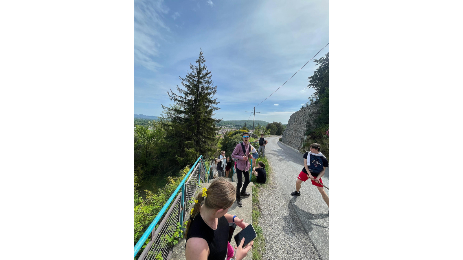 Viimeisenä päivänä Le Teilissä esitimme projektimme ja teimme toisen lyhyen projektin. Koululounaan jälkeen pelasimme yhdessä koripalloa. Lähdimme kaupunkikävelyksi ilmoitetulle kävelylle joka kuitenkin paljastu 10 kilometrin pituiseksi vaellukseksi auringon paisteessa.